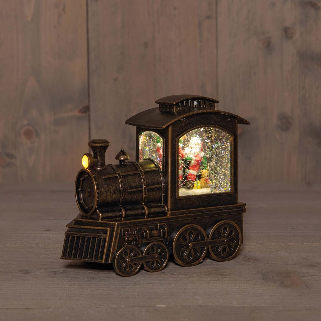 Anna's Collection LED-Glitzerwasserzug mit Weihnachtsmann Bronze 18 x 8 x 16 cm warmweiß