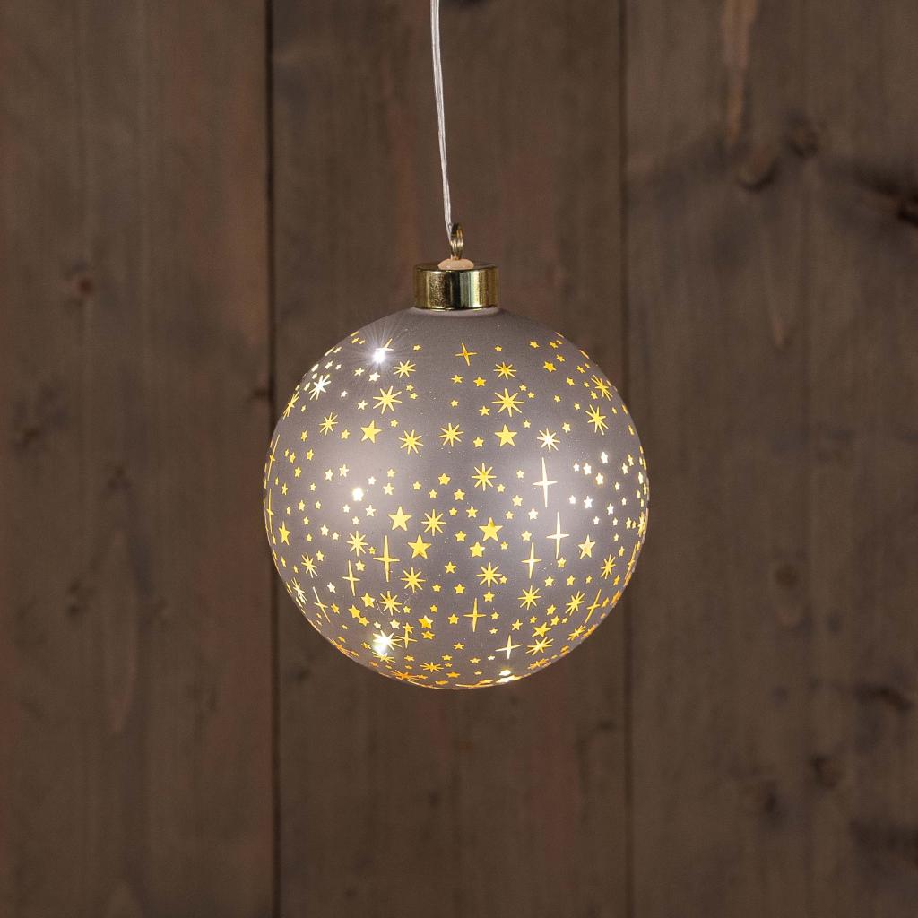 Diese elegante Weihnachtskugel aus der „Kosmos“-Serie von Anna’s Collection ist in einem sanften Champagnerton gehalten und mit einem funkelnden Sternenmuster verziert. Mit warmweißer LED-Beleuchtung bietet sie ein unwiderstehlich stimmungsvolles Akzent in deiner festlichen Dekoration.