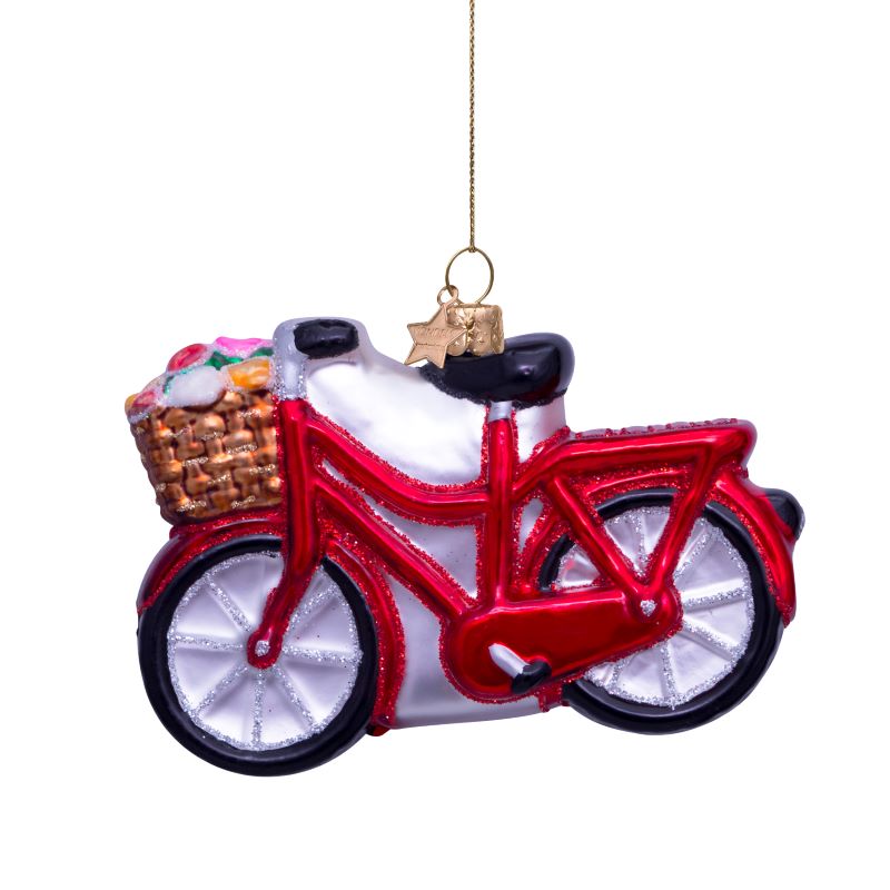 Vondels glas weihnachtskugel - Fahrrad mit Blumen 7cm rot 1 Stück