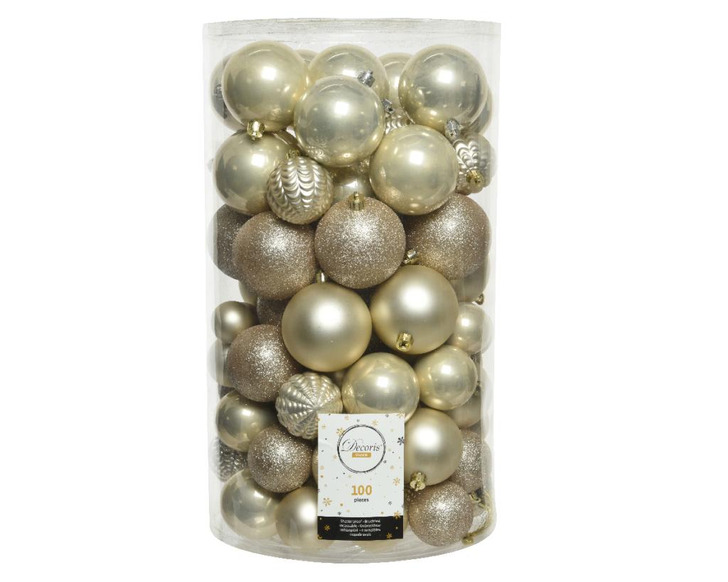 Decoris bolas de navidad surtidas de plástico, color perla 100 piezas