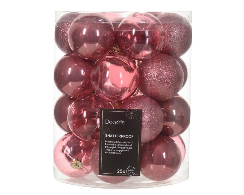 Decoris bolas de navidad surtidas de plástico, color rosa 25 piezas