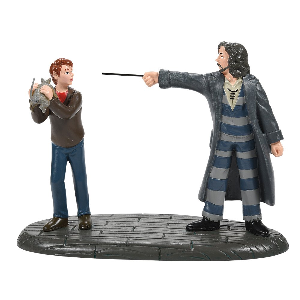 Basado en la icónica escena de la tercera película de la serie, Harry Potter y el Prisionero de Azkaban, esta figurita presenta a Ron Weasley, Sirius Black y Scabbers la rata, también conocido como Peter Pettigrew. Está hecha a mano y pintada con un acabado de alta calidad.
