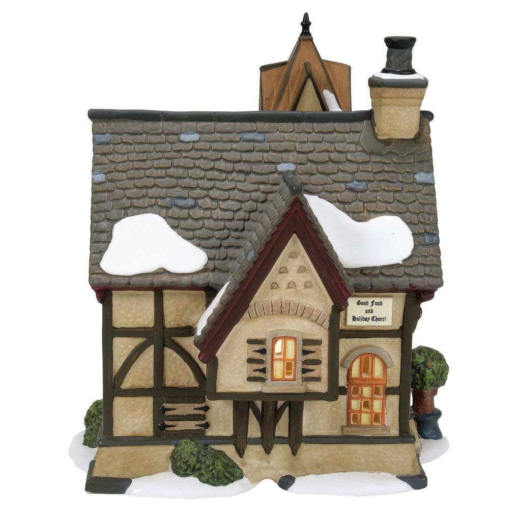Parte de la Serie del Pueblo de Dickens por Department 56. Adéntrate en la Inglaterra Victoriana, donde muchas de las tradiciones navideñas que celebramos hoy comenzaron por primera vez. Inspirado en el restaurante de Christmas Place en Pigeon Forge. Este edificio de porcelana iluminado es artesanal y pintado a mano. Funciona mediante un cable USB.