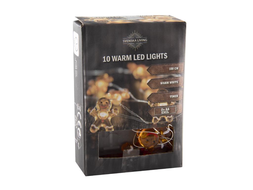 Iluminación de hilo LED – hombrecitos de jengibre, 10 luces, 1 m, blanco cálido