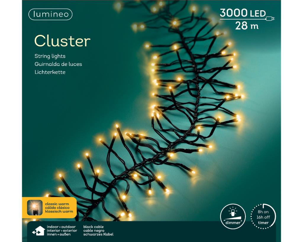 Lumineo cluster iluminación navideña 3000LED 28 metros clásica cálida para exteriores