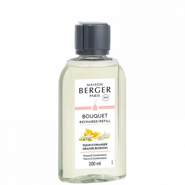 Una radiante oda a la hermosa flor blanca.. El Recambio 200ml Difusor de Perfume Fleur d'Oranger de Maison Berger Paris es un perfume para el hogar lleno de matices.. Fleur d'Oranger es tan etéreo como sensual, con un toque de jazmín y algo polvoriento, lo que revela toda la complejidad y refinamiento del azahar. Una fragancia floral deliciosamente cálida, confortable y ligeramente dulce que transforma su interior en un campo lleno de flores deliciosamente perfumadas..