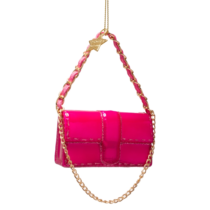 Adorno navideño de vidrio bolso de hombro de Vondels. Este hermoso adorno navideño de Ámsterdam de Vondels' soplado a mano no debe faltar en tu árbol de Navidad. Este adorno navideño de Vondels' tiene una altura de 4cm, lo que lo convierte en una excelente adición a otros adornos navideños de vidrio.