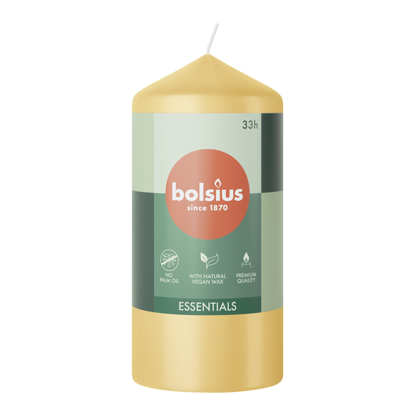 Découvrez la collection Essentials, les bougies pilier lisses de Bolsius ! Cette bougie de couleur jaune beige avoine mesure 12 cm de haut et ne coule ni ne produit de suie jusqu'à 43 heures grâce à notre technologie MaxAmbiance. Cette technologie associe une recette de cire unique à une mèche soigneusement sélectionnée pour le meilleur résultat de combustion. Fabriquée avec de la cire végétale et sans huile de palme. Dans cette collection, vous trouverez des bougies élégantes de différents formats et couleurs, que vous pouvez facilement combiner. Essentiel pour chaque intérieur !