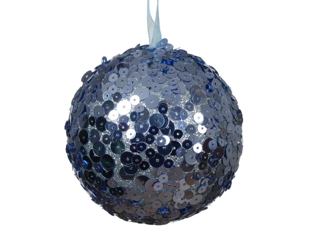 Decoris boule de noël - Paillettes 8cm en plastique, couleur bleu 1 pièce
