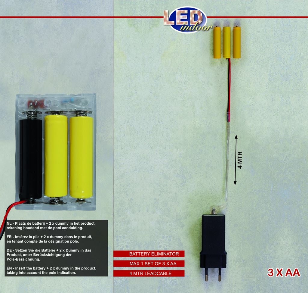 Con questo comodo adattatore puoi sostituire facilmente tre batterie AA con un'alimentazione continua dalla presa di corrente. Ideale per illuminazioni natalizie o decorazioni di lunga durata senza interruzioni.