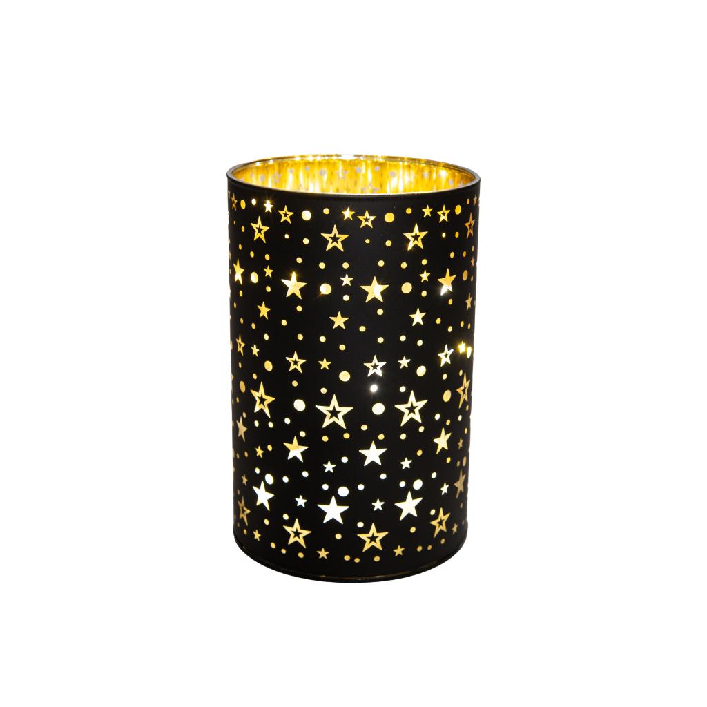 Vetro cilindrico 8 led d10h15cm oro/nero