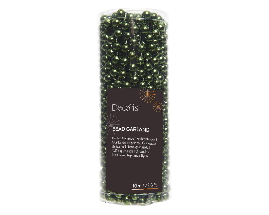 Decoris ghirlanda perle 10m in plastica, colore verde