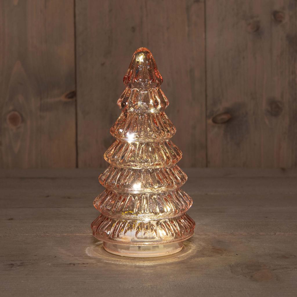 Anna's Collection LED albero di Natale in vetro – ca. 18,5 × 9,5 cm, rosa, bianco caldo