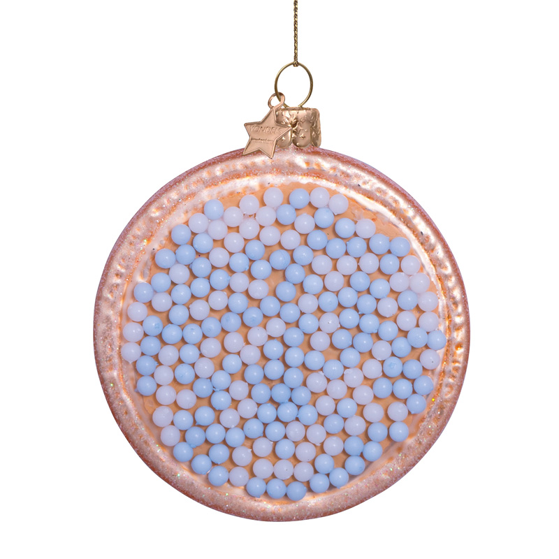 Vondels pallina di natale - Dolce olandese per nascita “Beschuit met muisjes” 8.5cm in vetro, colore blu 1 pezzo