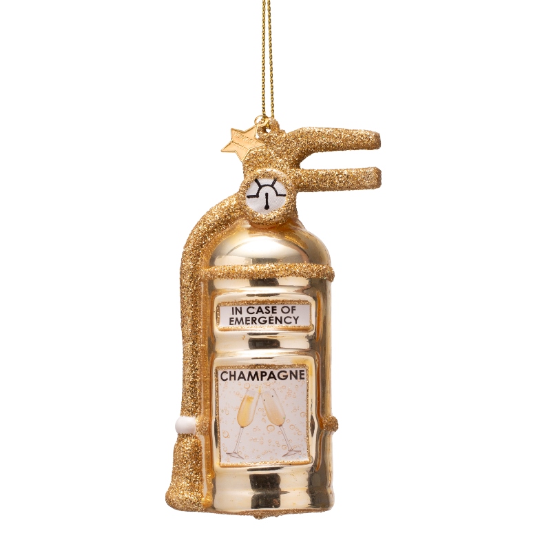 Vondels pallina di natale - estintore 'in case of emergancy champagne' 9.5cm in vetro, colore oro 1 pezzo