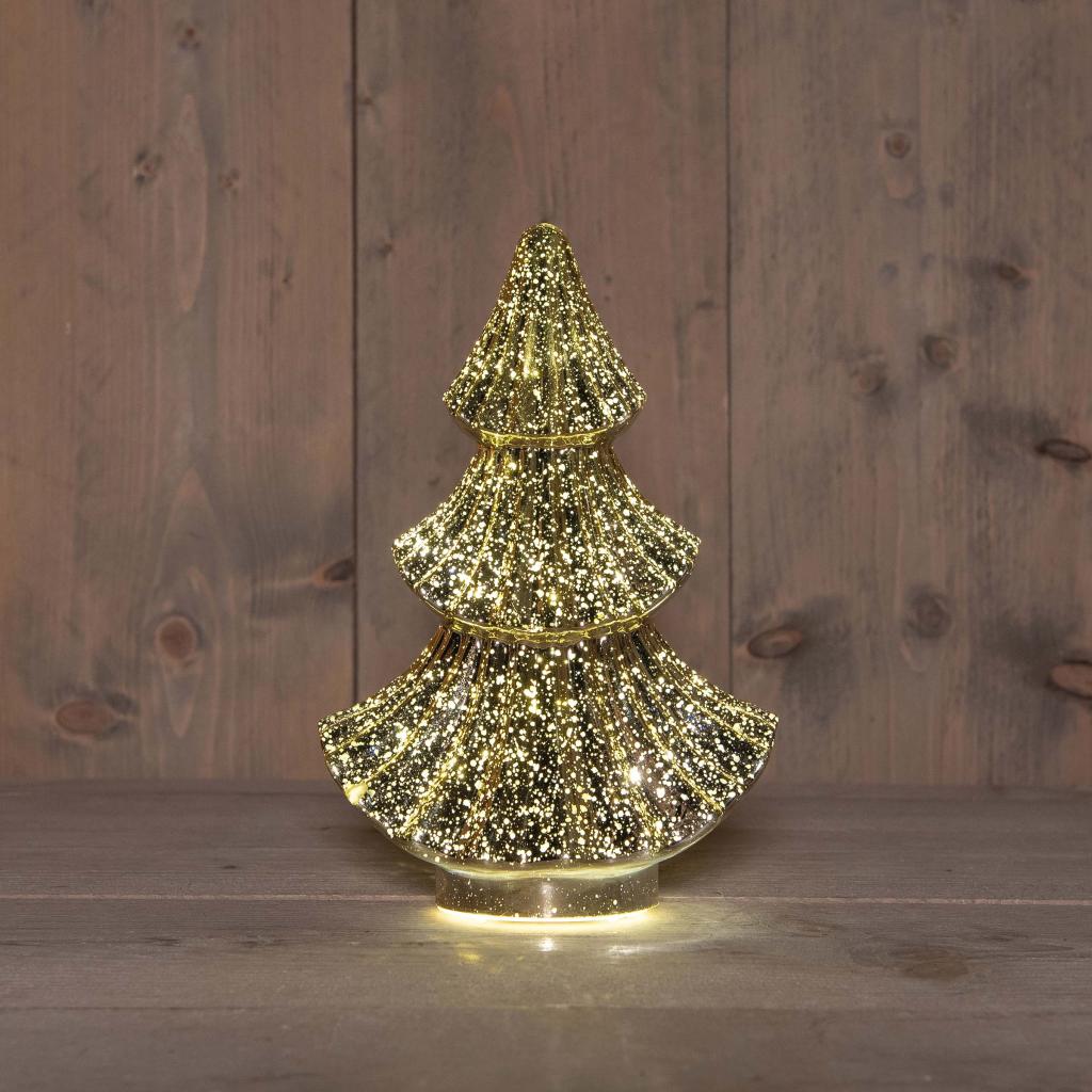 Anna’s Collection LED glazen kerstboompje – ca. 15,5 × 9,5 × 24 cm, metallic goud, warm wit