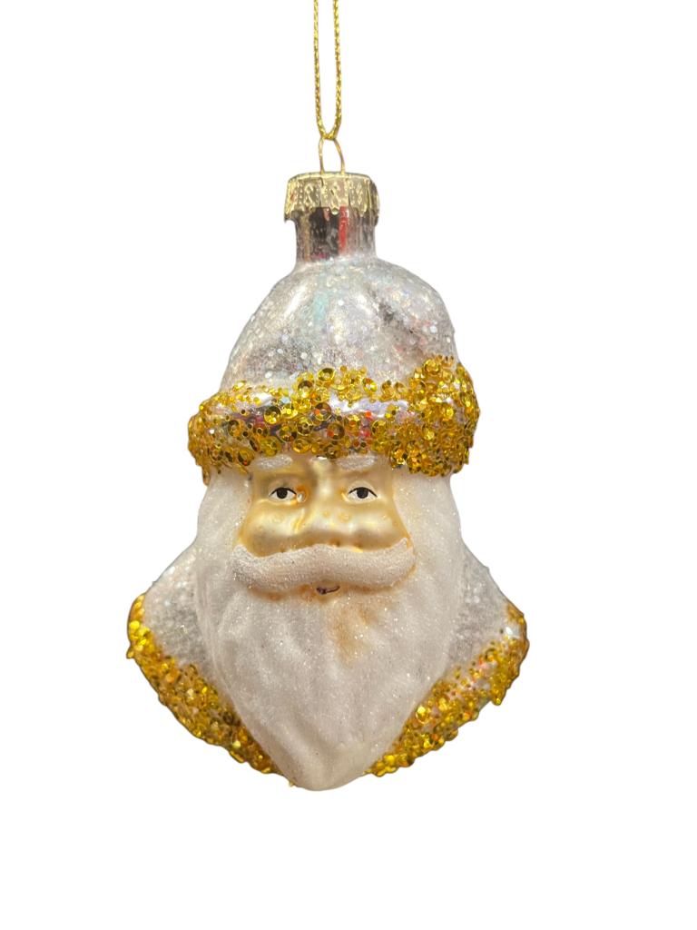 Glazen kerst ornament - kerstman 11.5cm wit, goud 1 stuks