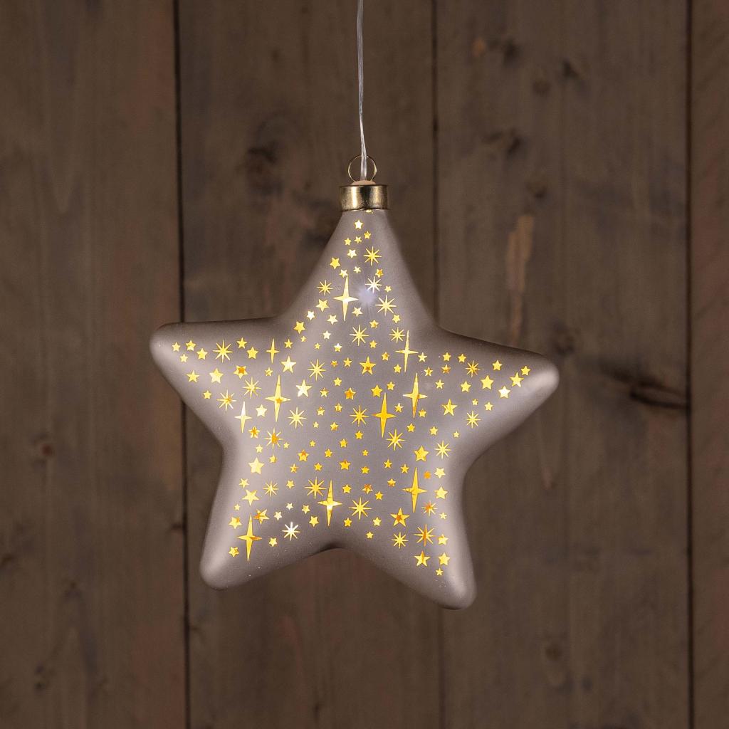 Anna’s Collection LED glazen ster – Ø 19 cm, champagne mat, warm wit