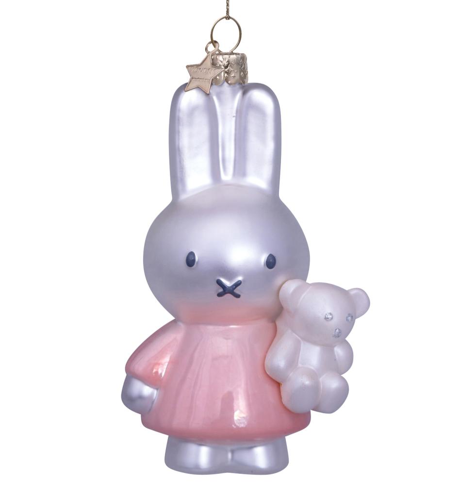 Vondels glazen kerstbal - nijntje met roze jurk en beer 11cm wit 1 stuks