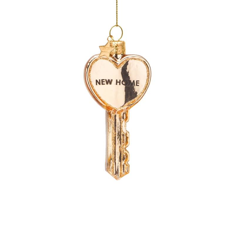 Vondels glazen kerstbal - sleutel 'new home' 8.5cm goud 1 stuks