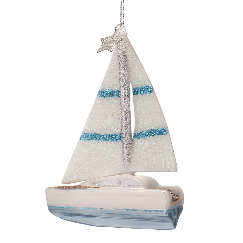 Vondels' zeilboot glazen kerstbal. Deze mooie mond geblazen Vondels kersthanger mag natuurlijk niet in jouw kerstboom ontbreken. Dit kerstornament van Vondels is 8cm hoog en daarom goed te combineren met andere glazen kerstballen.