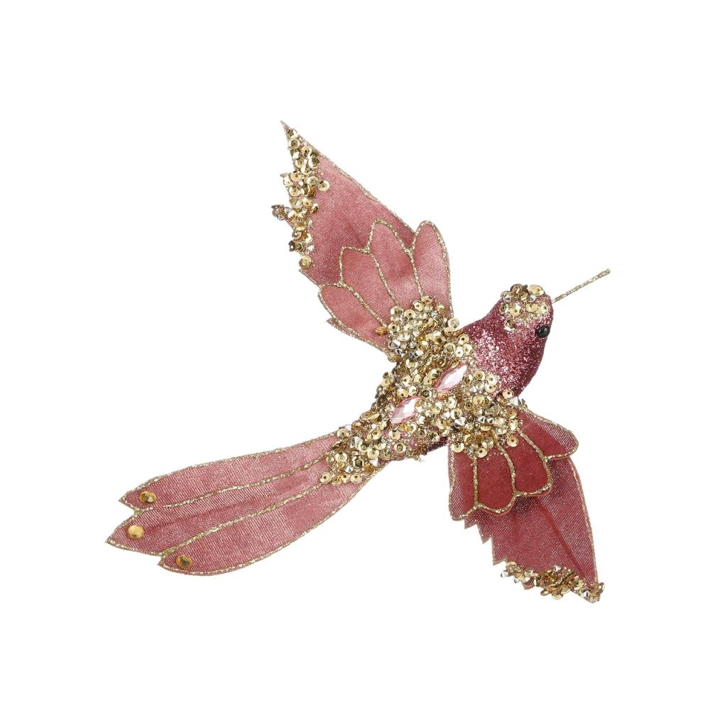 House of Seasons plastic christmas ornament - Hummingbird on clip 24cm pink 1 piece