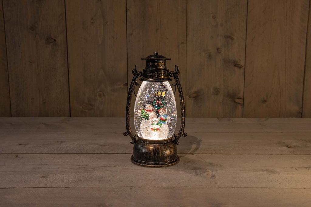 Lantern Snowman in Glitter Water LED Warm White 14.5x24cm 3xAA