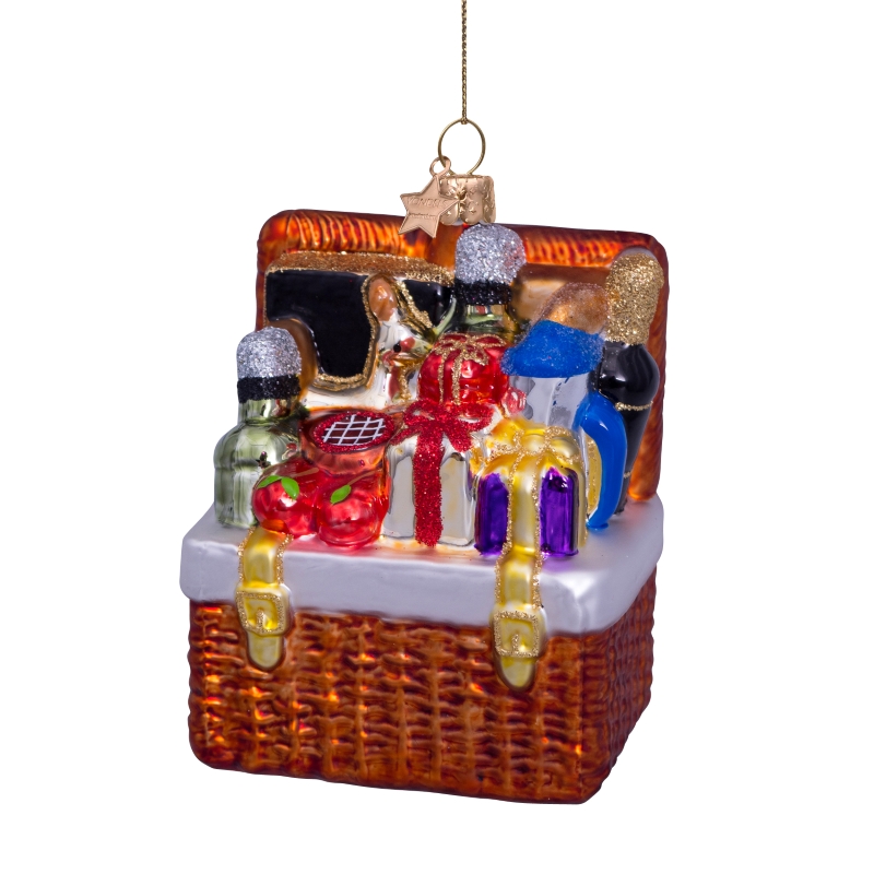Vondels' basket with gifts glass Christmas ornament. This beautiful mouth-blown Vondels Christmas decoration should certainly not be missing from your Christmas tree. This Christmas ornament by Vondels' is 11cm high, making it a great addition to other glass Christmas ornaments.